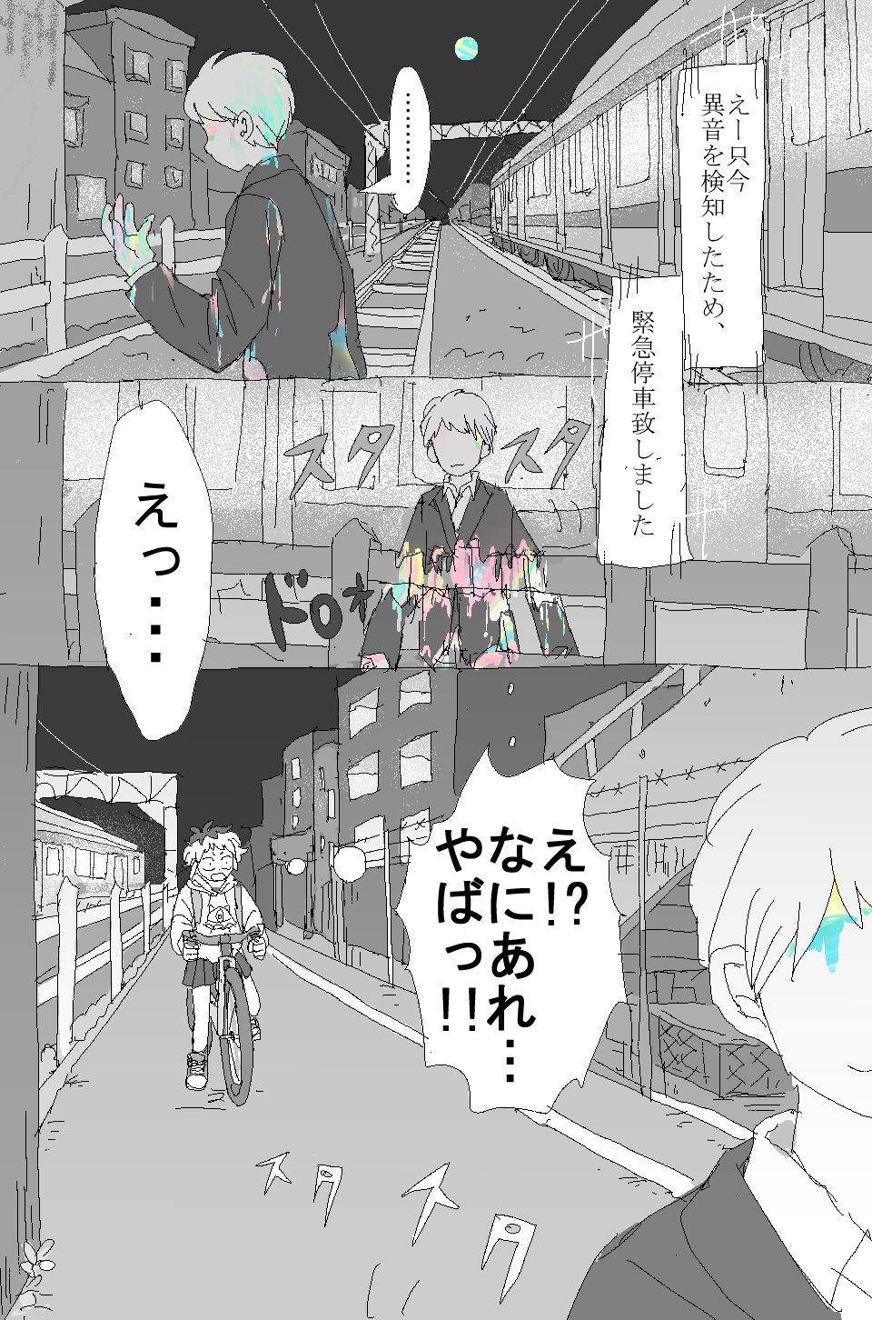 電車内からざわめきがかすかに聴こえる中、